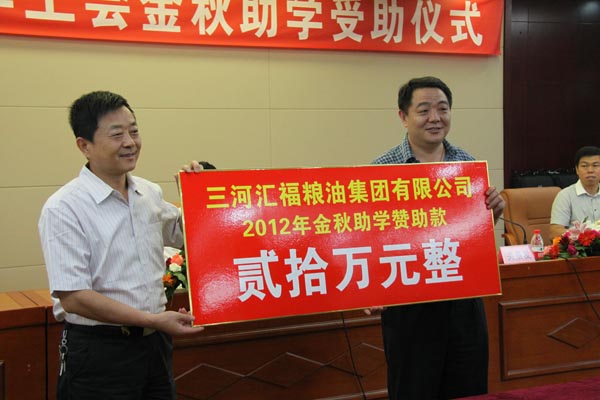 张学民代表汇福粮油集团向廊坊市金秋助学捐款20万元